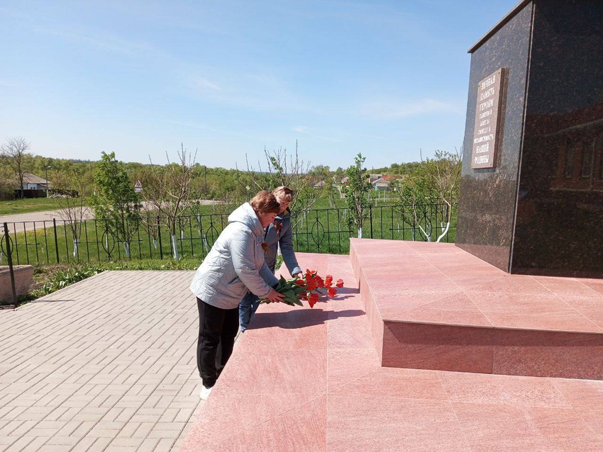 Специалисты нашего Дома культуры и жители села приняли участие в акции, распустившиеся цветы возложили к памятнику погибших воинов.